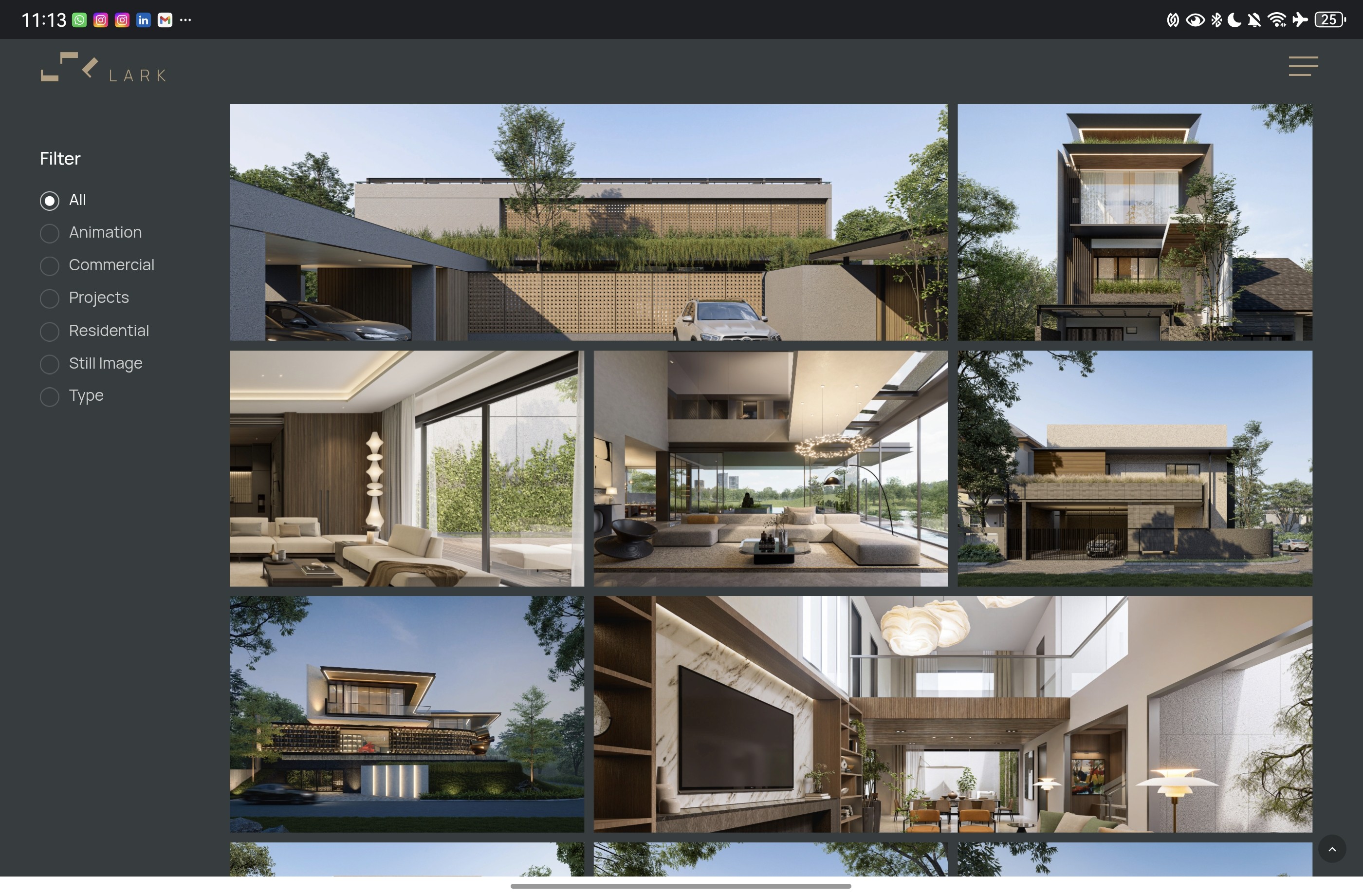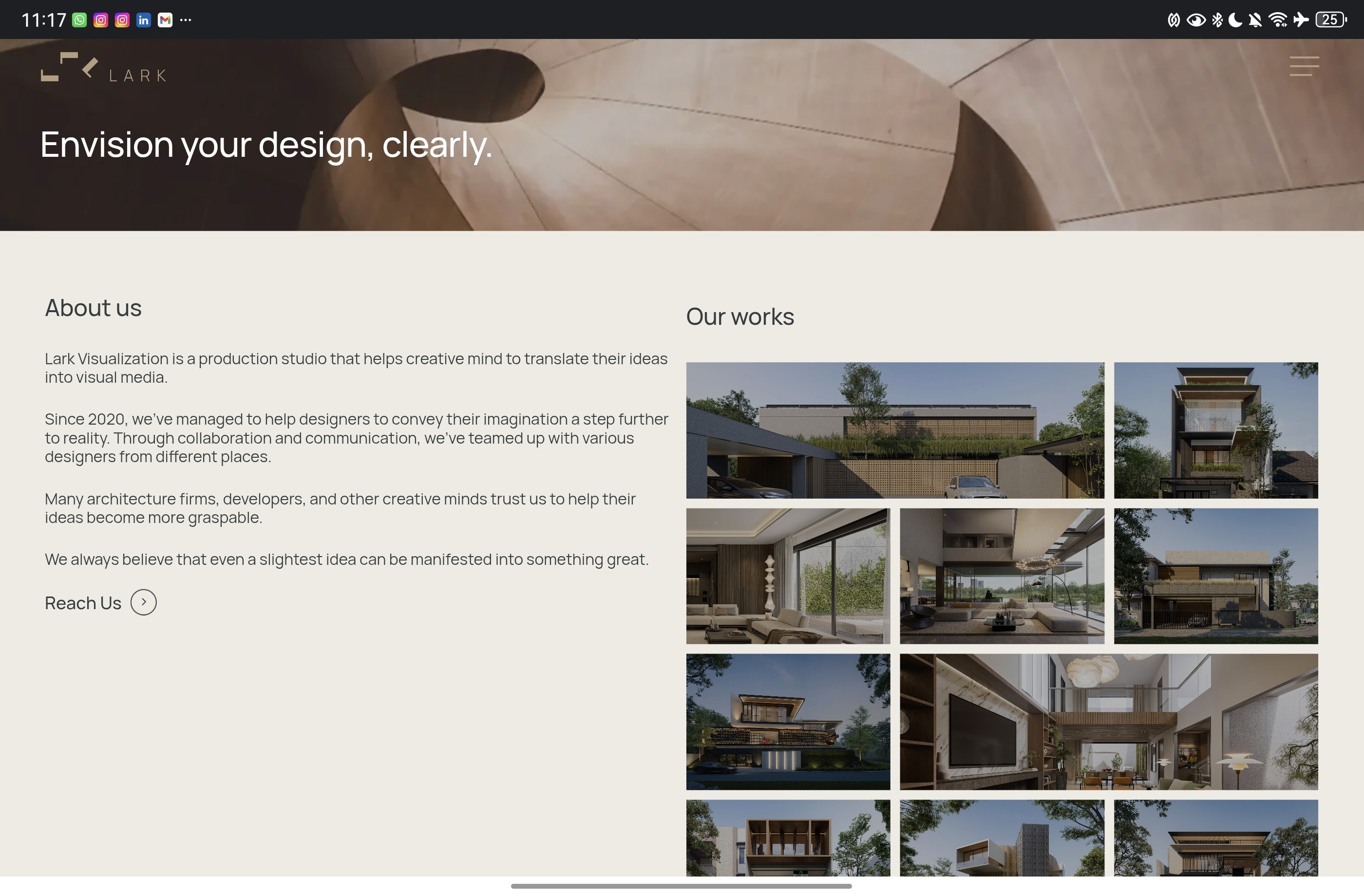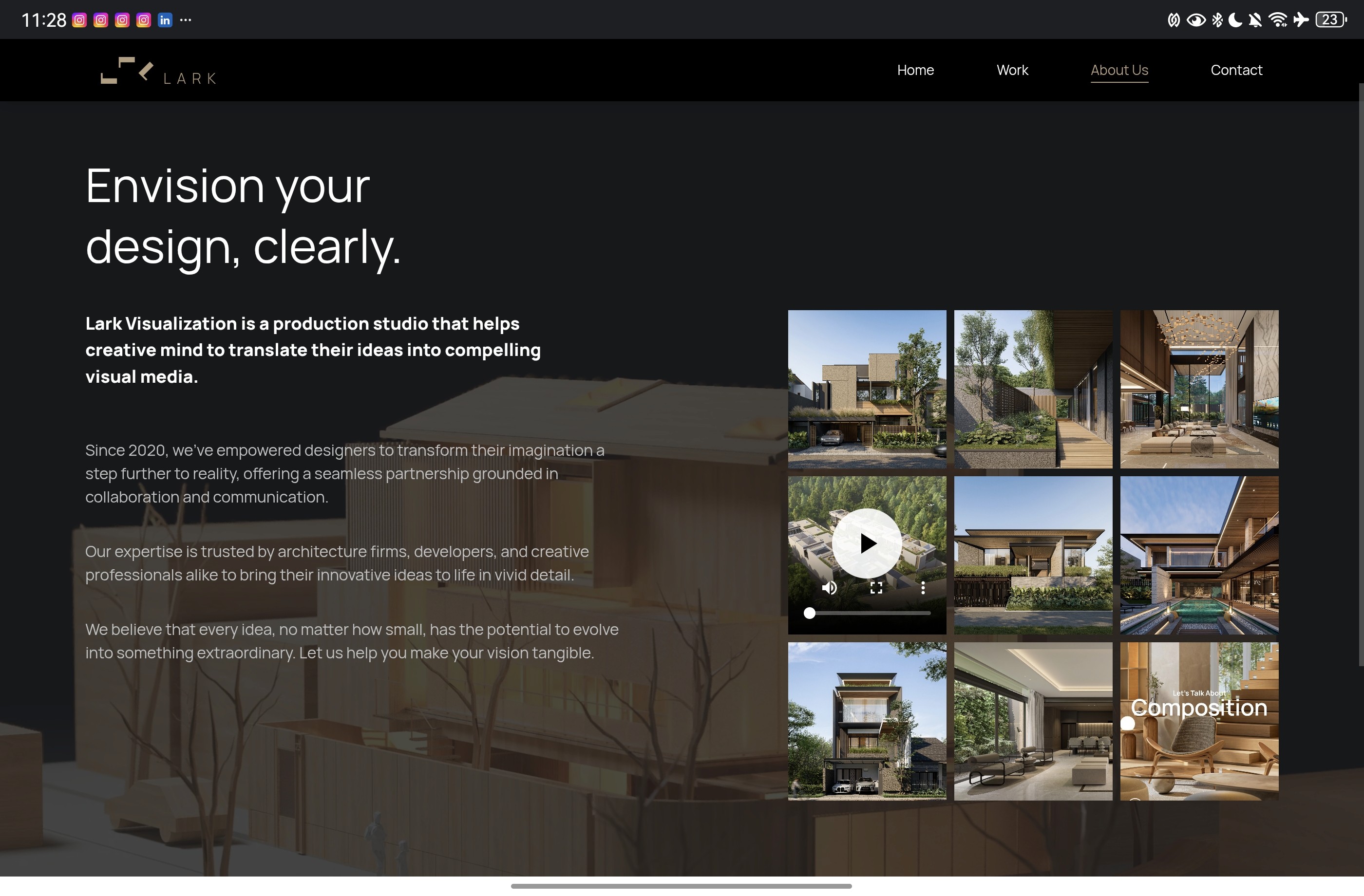 The client (Lark Visualization) is an architect design agency and has existing website that shows their works and portfolio of architect design. The goal of this freelance is to revamp the exsiting website with new design based on some given references.